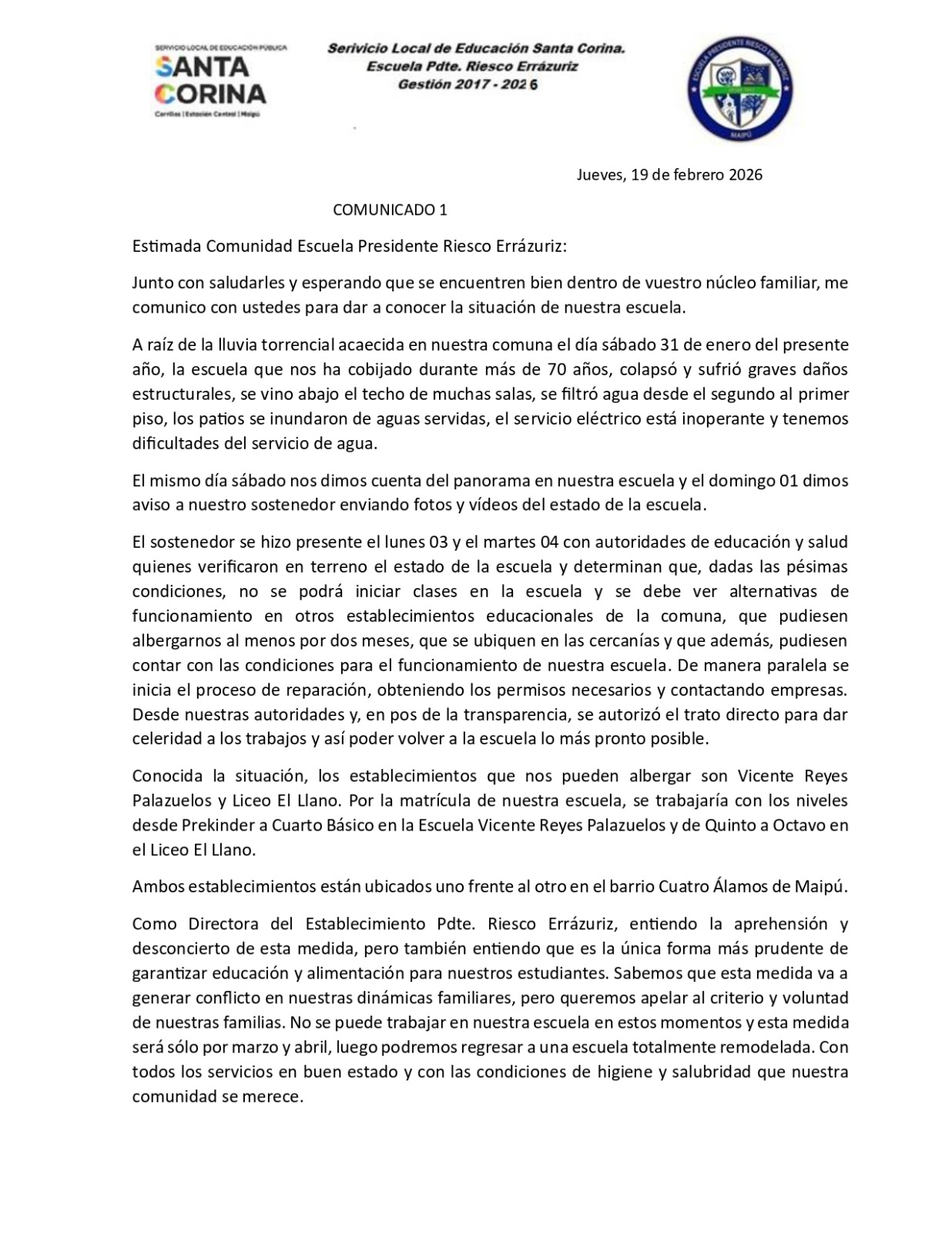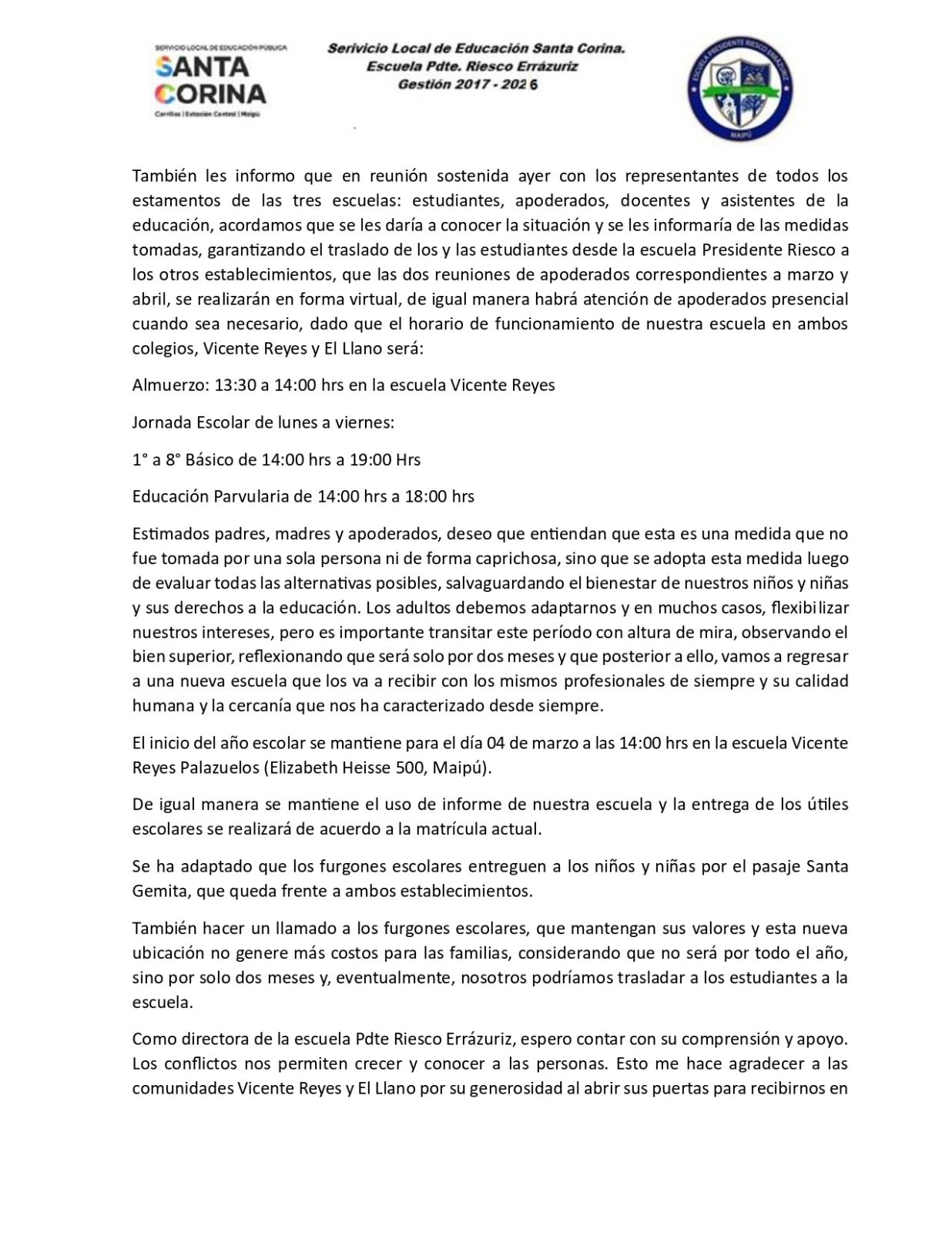 Bienvenidos a nuestra plataforma virtual de la Escuela Presidente Riesco Errázuriz D-275 (Ex. INSA).
